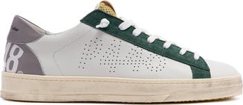 The Jack White Forrest features all-over white leather accented by yellow mesh, dark green suede and grey textured leather details. White laces, our signature P448 hand-distressed rubber sole and orange tread ground the look. Swap in the extra pair of yellow laces to tie it all together.