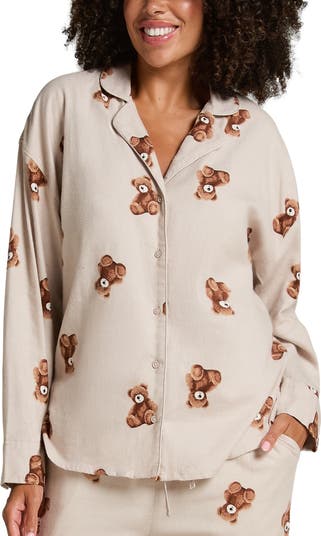 Wrap yourself in warmth with this charming pyjama jacket — made for nights in and lazy mornings. Made from soft flannel twill, it features a classic collar, long sleeves, and a full button-down front for a timeless sleepwear look. The playful bear pattern adds a fun, cozy touch you’ll love slipping into. It’s perfect for cooler nights, combine with the matching bottom for a complete look.