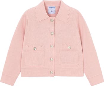 A cozy layer with charming craftsmanship, this piece blends warmth and elegance for everyday wear. Its decorative accents make it a stylish choice for little wardrobes.