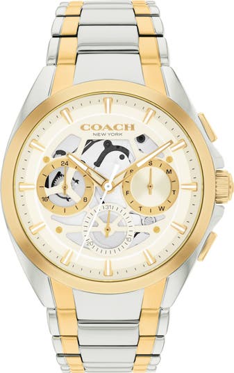 Slender indexes and bold hands distinguish a chronograph watch boasting three subdials that deliver precise timekeeping.