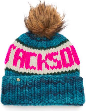 Jackson Hole Merino Wool Beanie with Faux Fur Pompom