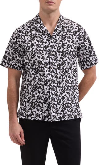 Light, smooth and ready for sunny-day plans, this camp shirt pairs a monochrome floral print with a relaxed silhouette that never looks sloppy. The straight hem lands neatly, and the retro camp collar frames the look with an air of laid-back confidence.