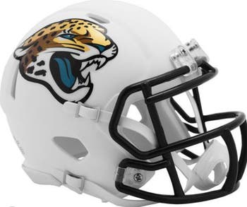 Jacksonville Jaguars 2024 Alternate Riddell Speed Mini Helmet. The ultimate NFL mini speed football helmet collectible, perfect NFL mini speed football helmets for autographs and collectors. Mini Speed Football Helmet with great graphics. Official NFL Mini Speed Football Helmet with official NFL team decal. ABS plastic Mini Speed Football Helmet shells with plastic facemask. Realistic interior foam padding, vinyl-leather chin strap. This is an affordable NFL football helmet for the true fan. Size: 1/2 scale versions of NFL football helmets. Size: 6"(L), 4½"(W), 5"(H) - (NOT FOR WEARING).