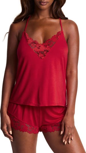 The Jacky is a cami and short set that features lace detail at the cami neckline, while the shorts have an elastic waistband for a comfortable fit.