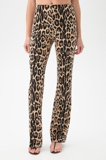 Flare leg pant in a leopard knit jacquard fabric with side zip closure
