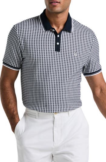 Gingham-inspired checks are jacquard-knit to bring sublte texture that relaxes this polo made from a stretch-enhanced cotton knit for a comfortable fit and cool breathability.
