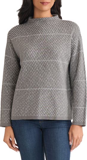 A grandly scaled riff on herringbone patterning will turn heads without overwhelming your look in this funnel-neck sweater that's jacquard-knit with a soft, fine texture.