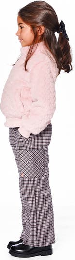 The Jacquard Knit Flare Pants With Houndstooth Pattern offer a bold mix of comfort and retro flair. These wide-leg trousers feature a high waist and statement cargo pockets on each side for a trendy utilitarian twist. Made from a soft and stretchy houndstooth jacquard knit, they’re perfect for girls who love standing out in style from the “Unicorns And Hearts” collection.