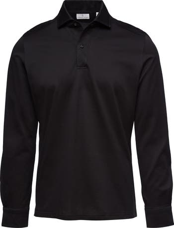 Emanuel Berg Jacquard Luxe Long Sleeve Polo, Main, color, Black