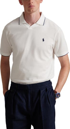 An open johnny collar further relaxes the vibe of this cool jacquard-knit cotton polo finished simply with the brand's iconic logo.
