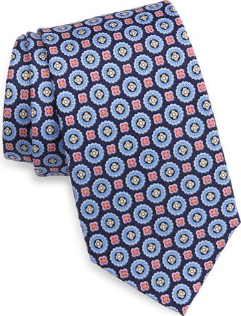 Colorful medallions bring art deco detailing to a tie crafted from premium silk jacquard that adds polish and distinction to any semiformal look.