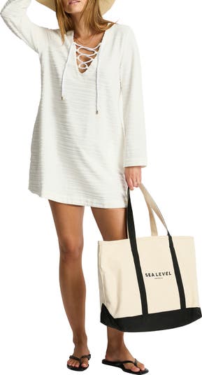 Go for a boho-beach vibe with this classic cover-up minidress cut from yarn-dyed terry-stripe jacquard with a lace-up neckline.