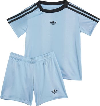 Baby will show their sporty side in this jacquard knit T-shirt and matching shorts set marked with heritage adidas logos like Trefoils and 3-Stripes.