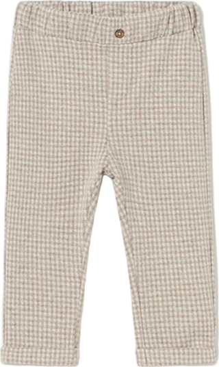 - Straight-leg pants with checkered pattern and buttoned waistband