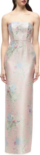 Jacqueline Floral Strapless Satin Twill Column Gown