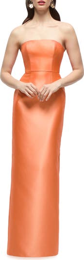 Perfectly paired with a slim flute of something sparkling, this columnar gown is designed to show off your shoulders and get glasses raised in tribute,