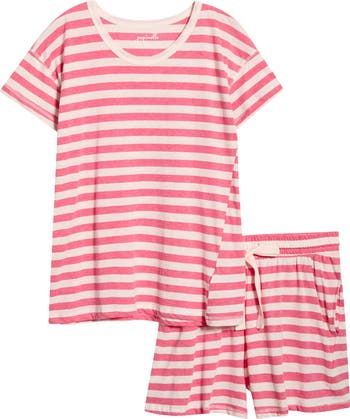 A loose fit brings another element of comfort to these slumber- or lounge-ready organic-cotton pajamas featuring a vibrant stripe print.