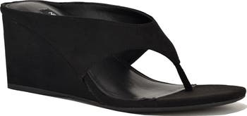 Elevate your look with the modern allure of this wedge sandal fashioned from smooth faux suede.