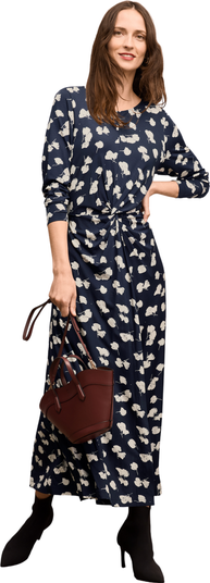 If “Who is she?” were a dress. Our slinky (but not clingy!) Printed Jersey and strategically placed ruching form a feel-good silhouette, while a midi-length hemline and an eye-catching print add drama.