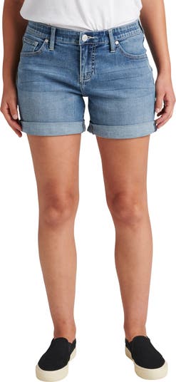 Classic denim shorts with wide cuffs and a comfy boyfriend fit are sunny-day ready.