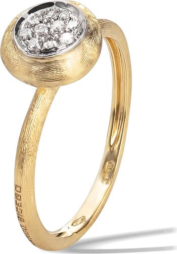 Pavé diamonds sparkle at the center of this 18-karat gold ring hand-etched in Italy using ancient Florentine techniques.
