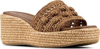 A woven strap and espadrille-inspired platform wedge maximize the boho-chic style of a weekend-staple sandal grounded by memory foam cushioning.