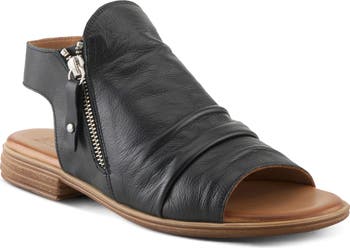An open toe and heel keep it breezy with maximum coverage in this leather sandal grounded on a cushioned footbed.