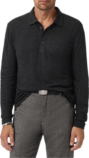 A fine jacquard-knit cable texture is brought to life by the marled three-color yarns of this long-sleeve polo that brings cool depth and dimension to any look you build with it.