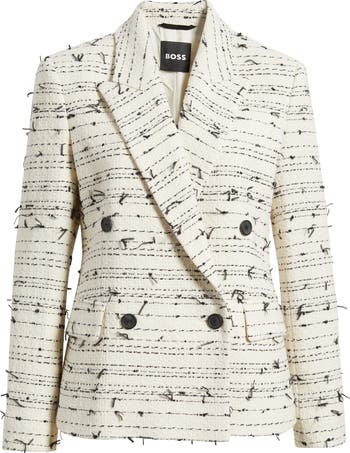 Build out your black-and-white collection with a tweed-textured jacket made from a cotton-forward blend.