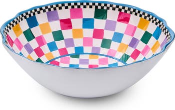Serve your faves in this amply sized bowl made from durable melamine to use indoors or out, and finished with a scalloped edge that highlights your tasty creations as it keeps them neatly contained.