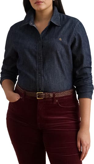 A dark-wash brings versatility to this button-up shirt made from nonstretch denim and finished with an embroidered monogram.