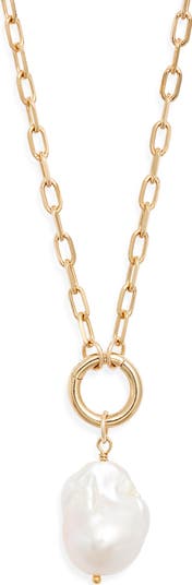 A beautiful baroque freshwater pearl steals the scene on an elegant chain necklace of 14k-gold fill.