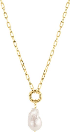 A beautiful baroque freshwater pearl steals the scene on an elegant chain necklace of 14k-gold fill.