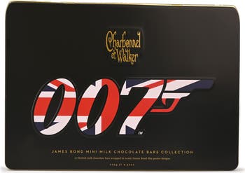 Celebrate the cinematic world of 007 with this collectors tin containing 27 delicious milk chocolate bars decorated with iconic 007 film posters and motifs from 1962 to the present day. Enjoy a sensory feast as you adventure through the action, exotic locations, colorful characters, gadgets, stunts and style of the world’s favorite secret agent.
