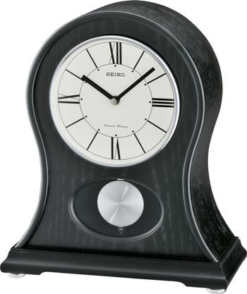 From its curved shape to its slightly distressed black finish, the James Mantel Clock is more than just a timepiece - it’s an artful addition to any mantel or table. With a precisely crafted wooden case, this clock features a glass cover and metal pendulum. Westminster/Whittington chimes play on the quarter-hour and create a charming complement to the hourly strikes, while a volume control and nighttime chime silencer complete the design.