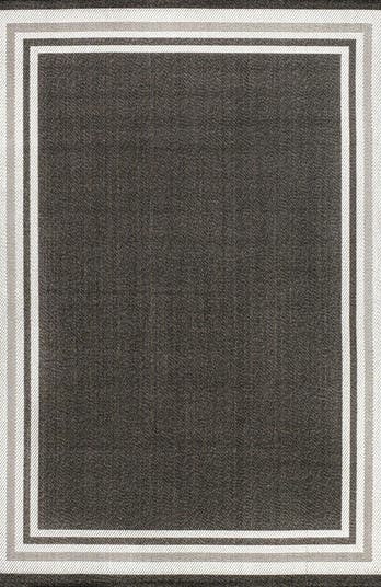 Inspired by the clean lines of modern design, our stripe border rug has a durable low pile. This versatile pattern is woven in contrasting colors for a low-key, minimalist look. Add graphic punch to your living room, dining room, bedroom, or porch with this easy-care, family-friendly rug.