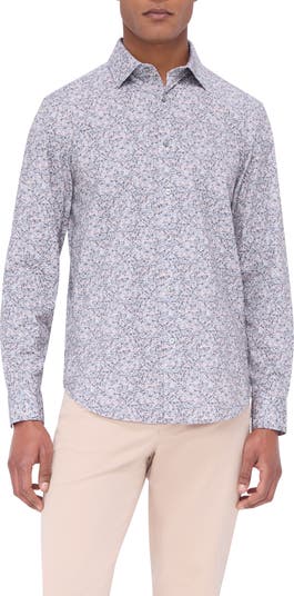 An abstract print enlivens a sport shirt cut from breathable, eight-way-stretch OoohCotton that resists wrinkles to keep you polished and comfortable. The mercerized fabric dries quickly for moisture-managing softness.