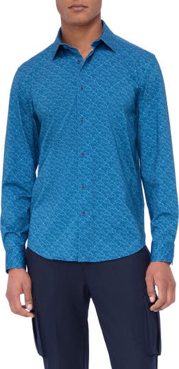 A retro print enlivens a sport shirt cut from breathable, eight-way-stretch OoohCotton that resists wrinkles to keep you polished and comfortable. The mercerized fabric dries quickly for moisture-managing softness.