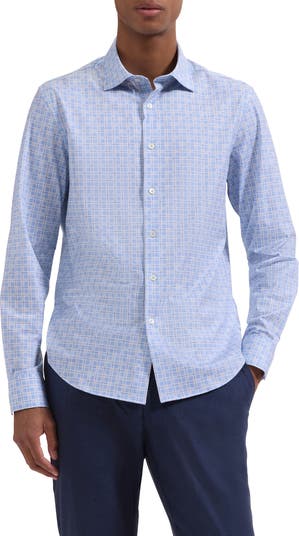 A stylized check print neatly grids a sport shirt tailored from breathable, wrinkle-resistant OoohCotton with a smartly pointed collar and cuffs you can button or fasten with your own cuff links. The smooth, double-mercerized knit fabric dries quickly for moisture-managing softness and consistent body temperature.