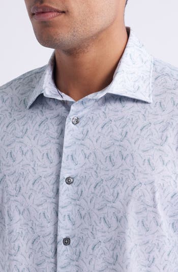 Look polished and feel confident in this button-up shirt made from breathable, wrinkle-resistant OoohCotton rendered in an allover feather print.