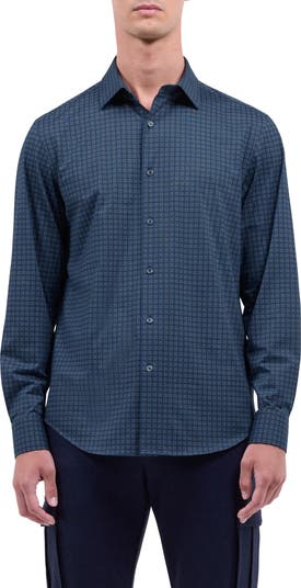 A crisp geometric print grids this knit sport shirt cut from breathable, eight-way-stretch OoohCotton that resists wrinkles to keep you polished and comfortable. The smooth double-mercerized knit fabric dries quickly for moisture-managing softness and consistent body temperature.
