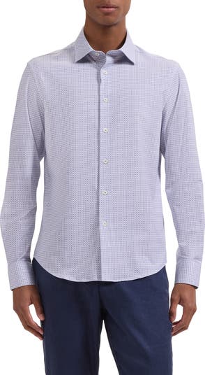 A tiny geometric print neatly grids a sport shirt tailored from breathable, wrinkle-resistant OoohCotton with a smartly pointed collar and cuffs you can button or fasten with your own cuff links. The smooth, double-mercerized knit fabric dries quickly for moisture-managing softness and consistent body temperature.