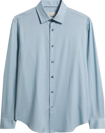A geometric medallion print enlivens a button-up shirt cut from breathable, eight-way-stretch OoohCotton that resists wrinkles to keep you polished and comfortable. The smooth double-mercerized fabric dries quickly for moisture-managing comfort and softness.