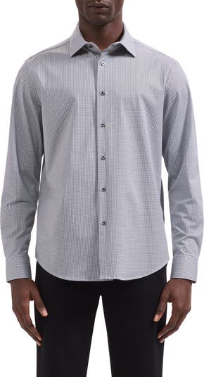 A tiny geometric print neatly grids a sport shirt tailored from breathable, wrinkle-resistant OoohCotton with a smartly pointed collar and cuffs you can button or fasten with your own cuff links. The smooth, double-mercerized knit fabric dries quickly for moisture-managing softness and consistent body temperature.