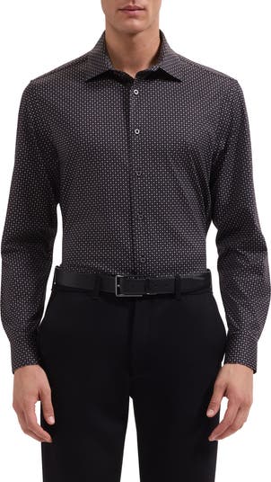 A tiny geometric print neatly grids a sport shirt tailored from breathable, wrinkle-resistant OoohCotton with a smartly pointed collar and cuffs you can button or fasten with your own cuff links. The smooth, double-mercerized knit fabric dries quickly for moisture-managing softness and consistent body temperature.