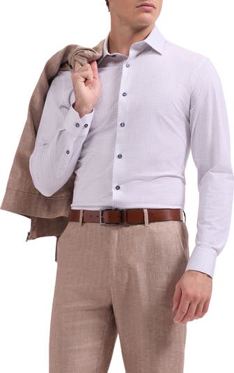 A tiny geometric print neatly patterns a sport shirt tailored from breathable, wrinkle-resistant OoohCotton with a smartly pointed collar and cuffs you can button or fasten with your own cuff links. The smooth, double-mercerized knit fabric dries quickly for moisture-managing softness and consistent body temperature.