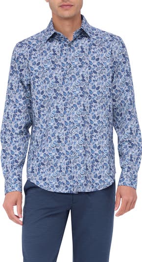 Scattered leaves enliven a sport shirt cut from breathable, eight-way-stretch OoohCotton that resists wrinkles to keep you polished and comfortable. The mercerized fabric dries quickly for moisture-managing softness.