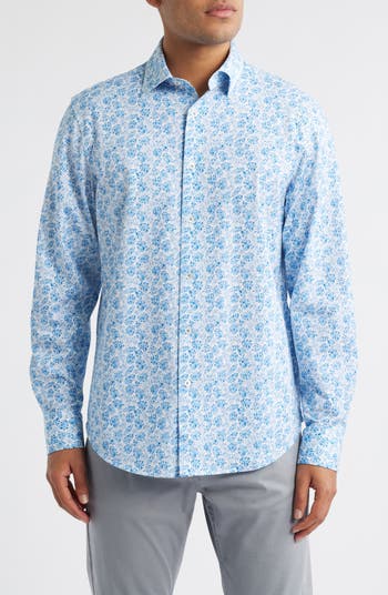 A tropical leaf print enlivens a sport shirt cut from breathable, eight-way-stretch OoohCotton that resists wrinkles to keep you polished and comfortable.