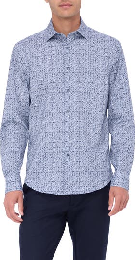 Bugatchi James OoohCotton<sup>®</sup> Medallion Print Button-Up Shirt, Main, color, Navy