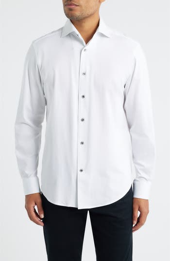Mother-of-pearl buttons add visual interest to a solid sport shirt made from stretchy, wrinkle-resistant OoohCotton that keeps you polished and comfortable. The smooth, double-mercerized knit fabric dries quickly for moisture-managing softness and consistent body temperature.